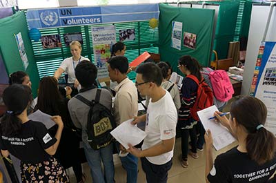 UNV Cambodia engages with partners such as the VolCam Network, the Ministry of Education, Youth and Sports, and other UN agencies, to strengthen the national and regional systems needed to build capacity for volunteerism through supportive infrastructure and environment where volunteerism can flourish. UNV Cambodia works with partners to integrate qualified and highly motivated UN volunteers into development programming and promotes the value and recognition of volunteerism.